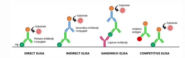 根據(jù)實驗設計,ELISA可分為以下幾種主要類型: