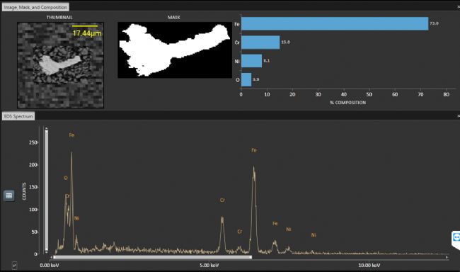 那么,金屬異物到底該如何檢測呢?飛納 Phenom ParticleX 以掃描電鏡和能譜儀為硬件基礎,可以全自動對金屬雜質顆粒進行快速識別、分析和分類統(tǒng)計,為客戶的研發(fā)以及生產提供快速、準確和可靠的定量數據支持。