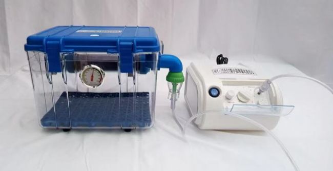 小鼠麻醉:腹腔注射1%戊巴比妥鈉溶液(50μL/10g體重),待小鼠角膜反射消失后固定于手術(shù)臺(tái);氣道暴露:將北京元森凱德(YSKD)小動(dòng)物可視化喉鏡插入小鼠口腔深部,暴露聲帶;精準(zhǔn)接種:將北京元森凱德(YSKD)氣管肺遞送裝置的霧化針插入氣管,快速推送50μL病毒氣溶膠溶液,確保氣溶膠直接進(jìn)入肺部;術(shù)后護(hù)理:接種后將小鼠直立放置,待蘇醒后放回飼養(yǎng)籠,觀察2h確認(rèn)無(wú)異常。