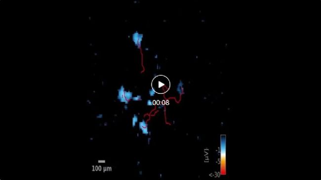 分化第30天,在MEA上對患者來源的G256W/+神經(jīng)元進行的功能性神經(jīng)突追蹤。