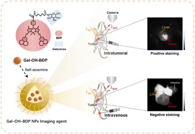 方案1. Gal–OH-BDP NPs結(jié)構(gòu)及NIR-II成像示意圖