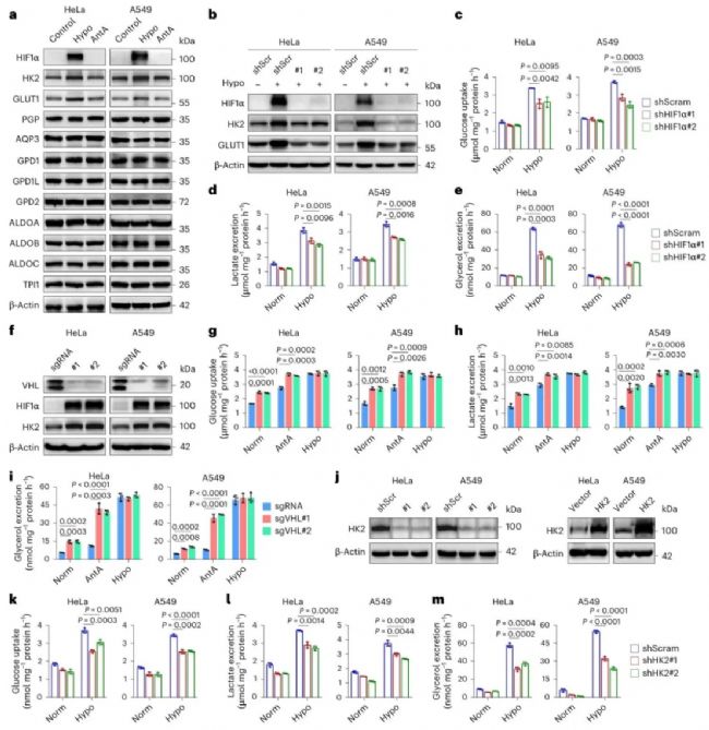 研究通過gain-of-function與loss-of-function實驗證實,HIF1α(缺氧誘導(dǎo)因子1α)是甘油代謝通路的上游調(diào)控因子: