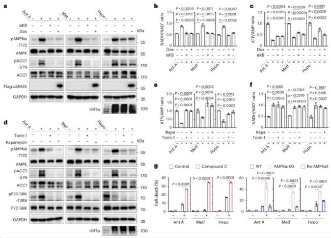 研究通過代謝流分析首次證實:缺氧條件下,葡萄糖經(jīng)糖酵解生成DHAP(二羥丙酮磷酸),ALDOB與GPD1/GPD1L形成復(fù)合物,介導(dǎo)DHAP向甘油3-磷酸轉(zhuǎn)化,再經(jīng)PGP催化生成游離甘油,最終通過AQP3轉(zhuǎn)運至細胞外。該通路的核心功能是持續(xù)消耗NADH,緩解缺氧誘導(dǎo)的還原應(yīng)激——GPD1/GPD1L雙敲除可顯著升高NADH/NAD⁺比率,加劇細胞死亡,而補充α-酮丁酸(NADH氧化底物)可逆轉(zhuǎn)這一表型。 從科研視角看,該發(fā)現(xiàn)填補了"葡萄糖代謝-還原應(yīng)激調(diào)控"的機制缺口,明確了甘油排泄作為NADH耗散途徑的全新功能,拓展了缺氧代謝通路的認知邊界。