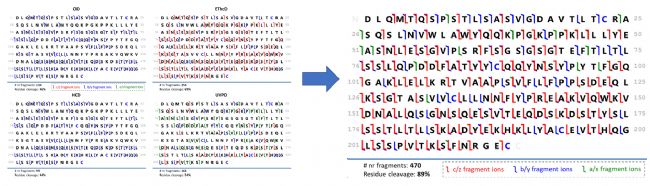 top down方法的結(jié)合,以及使用適當?shù)纳虡I(yè)軟件工具,首次在序列、PTMs和單體或二聚體形式的存在方面表征LCs的高可變性,能夠識別出與特定患者的特定治療方法相關(guān)的意外修飾,同一患者出現(xiàn)不同的LC序列表明存在多個漿細胞克隆或指向不可預(yù)測的成熟過程。該研究的總體目標是確定影響這些LC聚集傾向并導(dǎo)致疾病的主要因素,以了解聚合過程并能夠在將來防止聚集的發(fā)生。
