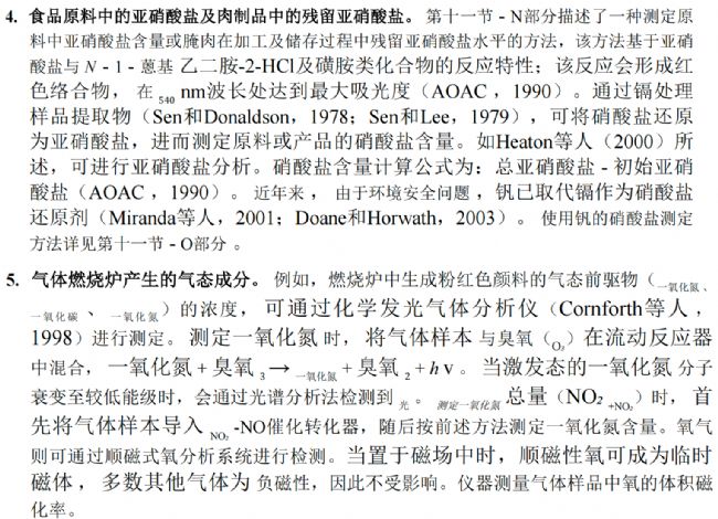 第十一節(jié) - J部分描述了一種測定完整肌肉切片中MMb還原能力的檢測方法 ,該方法改編自Watts等人(1966年)的研究。具體操作時,將樣本置于亞硝酸鈉溶液中浸泡20分鐘,使樣本表面的肌肉色素首先被氧化生成MMb。隨后將厚度為1.27厘米的切片真空包裝,在30℃環(huán)境下通過測量 K/S 反射率比值(572/525納米波長)持續(xù)監(jiān)測表面MMb濃度,持續(xù)2小時。樣本的還原能力定義為孵育期間表面MMb濃度的百分比下降值。第十一節(jié)-K部分則詳細說明了對第十一節(jié)-J部分的改進方案,用于測定絞肉樣本的MRA值(Sammel等人,2002年)。