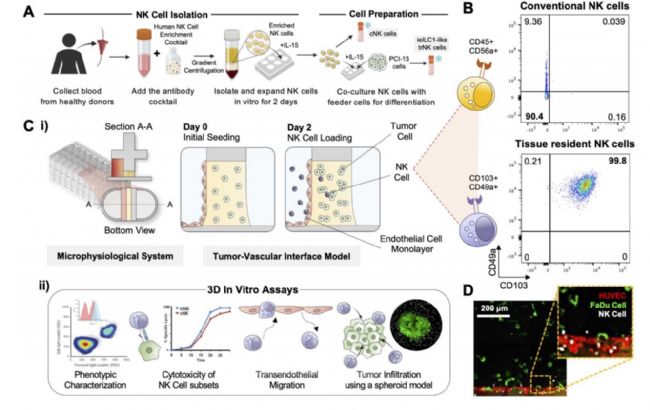 圖1.基于微生理系統(tǒng)(MPS)的腫瘤模型設(shè)計(jì),用于自然殺傷(NK)細(xì)胞特征分析。