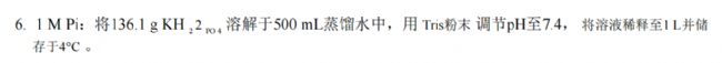 3. 1 M Tris/鹽酸:將121.14 g Tris溶于500 mL蒸餾水中, 用鹽酸將pH調(diào)節(jié)至7.4 , 將溶液稀釋至1 L并室溫保存 。