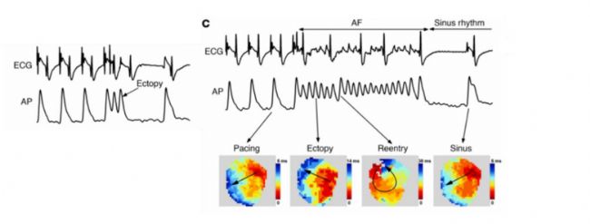 在心律失常機(jī)制研究中,高分辨熒光標(biāo)測(cè)技術(shù)可精準(zhǔn)定位組織異常興奮灶,清晰識(shí)別折返環(huán)結(jié)構(gòu)與電傳導(dǎo)軌跡,直觀捕捉傳導(dǎo)阻滯、傳導(dǎo)異質(zhì)性等致心律失常電生理特征。通過(guò)同步量化鈣信號(hào)與電信號(hào)的時(shí)空關(guān)聯(lián)特性,包括鈣瞬變時(shí)程、幅值、鈣交替現(xiàn)象,以及動(dòng)作電位時(shí)程延長(zhǎng)、復(fù)極離散度增加等,能夠深入解析鈣釋放與攝取異常引發(fā)的鈣穩(wěn)態(tài)失衡,明確其在 “電重構(gòu)” 底物形成中的核心驅(qū)動(dòng)作用。例如在無(wú)菌心包炎房顫模型中,TRPV4 阻斷劑可通過(guò)抑制鈣信號(hào)紊亂,減少折返環(huán)形成,標(biāo)測(cè)數(shù)據(jù)為該靶點(diǎn)的抗房顫作用提供了直接可視化證據(jù)[3]。