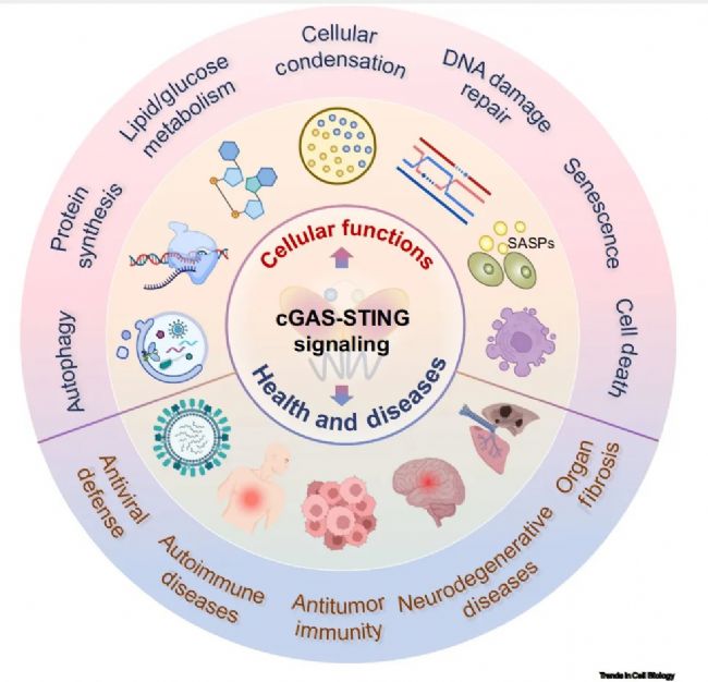 本綜述通過系統(tǒng)梳理最新研究進(jìn)展,結(jié)合圖文闡述,全面總結(jié)了cGAS-STING信號(hào)在調(diào)控細(xì)胞生理狀態(tài)方面的作用、相關(guān)疾病的潛在機(jī)制,并對(duì)靶向該通路治療上述疾病的轉(zhuǎn)化應(yīng)用前景進(jìn)行了展望。