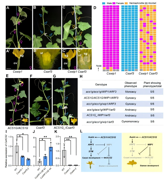 圖1 . CsARF3促進(jìn)黃瓜雌性化
