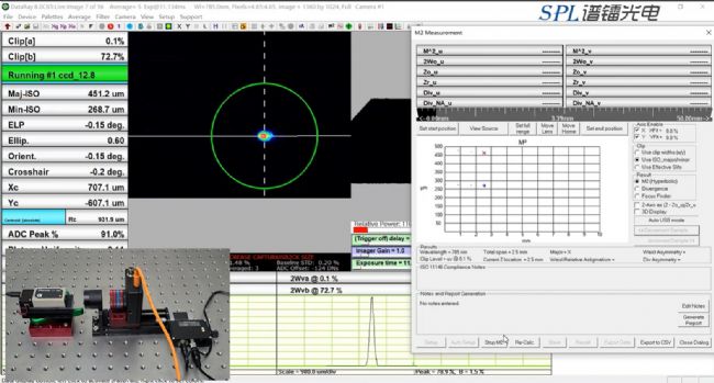 Dataray的軟件可以讓用戶快速便捷的進行光束質(zhì)量因子M²的測量,將LCM安裝到電控導軌中,并將待測光束對準(切記需要進行衰減,否則容易損壞光束質(zhì)量分析儀)。