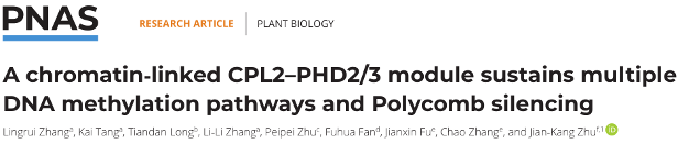 Zhang L, …et al, Zhu JK. A chromatin-linked CPL2-PHD2/3 module sustains multiple DNA methylation pathways and Polycomb silencing. Proc Natl Acad Sci U S A. 2025 Nov 25;122(47):e2523102122. doi: 10.1073/pnas.2523102122.