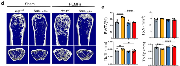 LepR+ MSCs中Nrp1的缺失干擾PEMF誘導(dǎo)的骨形成