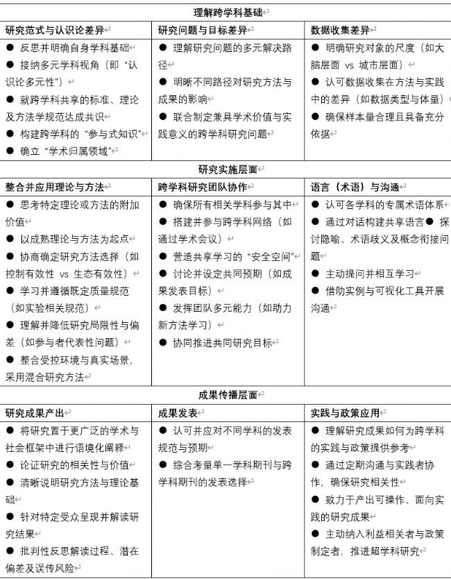 表2. 跨學(xué)科研究過程的步驟與建議概覽
