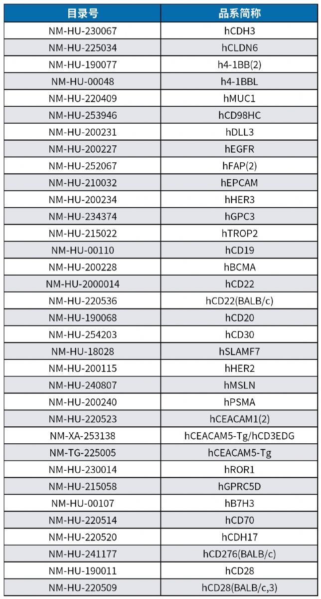 表2. 南模生物CAR-T相關(guān)模型(部分展示)
