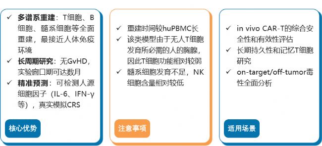 對于In vivo CAR-T這一革命性技術(shù),免疫系統(tǒng)人源化小鼠(HIS)已成為標(biāo)配。huPBMC模型是"快槍手",適合早期篩選;huHSC模型是"金標(biāo)準(zhǔn)",為臨床決策提供最終依據(jù)。兩者結(jié)合,才能構(gòu)建完整的臨床前數(shù)據(jù)包,最大限度降低臨床開發(fā)風(fēng)險。