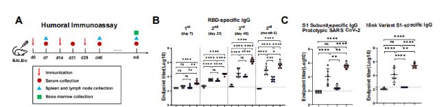 圖2. RBD-GP9-Fusion疫苗的生物穩(wěn)定性和免疫遷移
