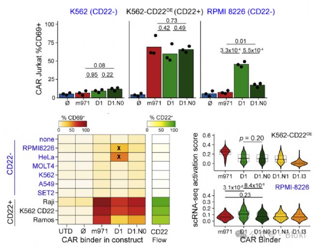 優(yōu)化出新的D1.N0,構(gòu)建CAR-T,不再響應(yīng)CD22陰性細(xì)胞發(fā)生激活