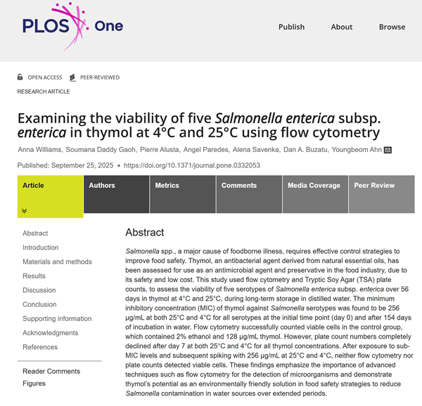 近日,美國食品藥品監(jiān)督管理局(FDA)國家毒理研究室團隊在國際期刊《Plos ONE》發(fā)表研究報告,其開展的 “利用流式細(xì)胞術(shù)檢測 4°C 和 25°C 下五種腸道沙門氏菌腸道亞種在百里酚中的存活率” 研究,不僅為沙門氏菌防控提供新方向,更凸顯了 ApogeeFlow 納米流式細(xì)胞儀在微生物分析領(lǐng)域的出色性能。