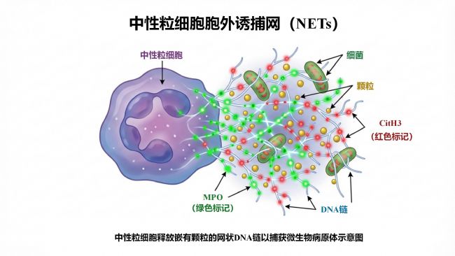 中性粒細(xì)胞胞外誘捕網(wǎng)(NETs)是免疫系統(tǒng)的“雙刃劍”——既能捕獲病原體,也可能引發(fā)過度炎癥反應(yīng)。