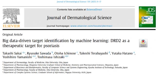 2025年4月,大分大學(xué)的Takashi Sakai等研究團(tuán)隊(duì)在《Journal of Dermatological Science》(IF=5.408)上發(fā)表了題為“Big data-driven target identification by machine learning: DRD2 as a therapeutic target for psoriasis”的研究論文。該研究旨在解決藥物靶點(diǎn)稀缺的問題,開發(fā)了一種基于機(jī)器學(xué)習(xí)(ML)的系統(tǒng),能夠預(yù)測(cè)疾病相關(guān)的靶點(diǎn)分子,并將該系統(tǒng)應(yīng)用于銀屑病,以探索新的研發(fā)策略。