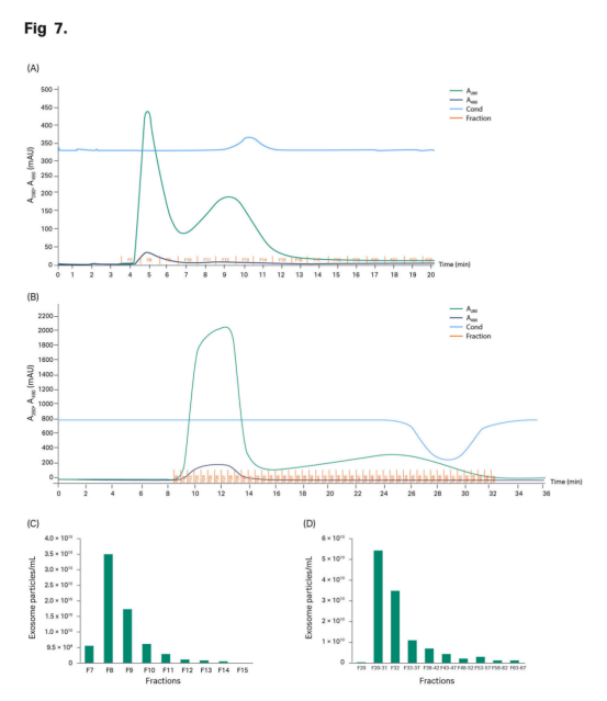 切向流過濾(TFF)和尺寸排阻色譜(SEC)是兩種常用于從復(fù)雜生物流體中富集外泌體的方法。結(jié)合這些著名的技術(shù)(它們是溫和的外泌體純化方法),可以去除大部分宿主細(xì)胞蛋白(HCP)和DNA。此外,這種工作流程回收率高,并能最大限度地減少純化外泌體生物活性的損失。