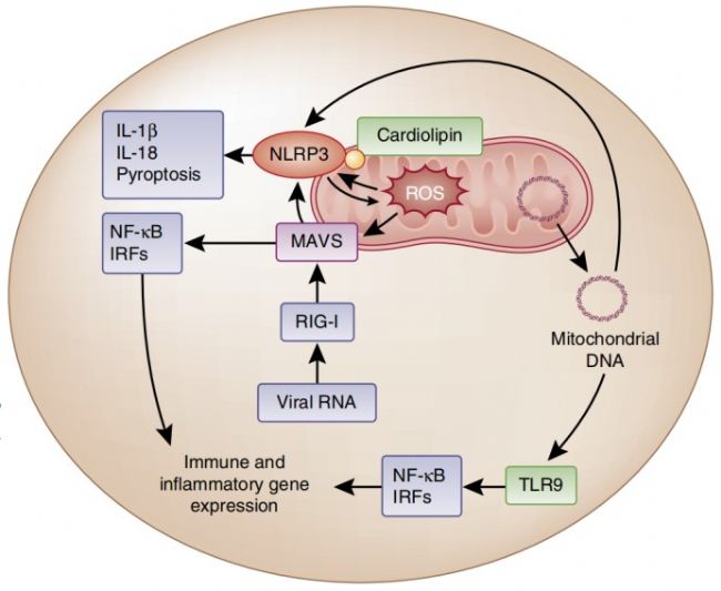 Subramanian N, Natarajan K, et al. The adaptor MAVS promotes NLRP3 mitochondrial localization and inflammasome activation. Cell. 2013 Apr 11;153(2):348-61.