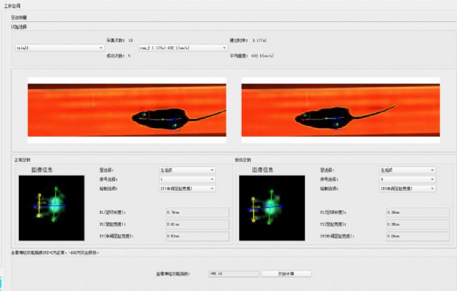 交互式爪印糾正功能設(shè)置了爪印糾正按鈕,在初步檢測后可通過逐幀播放、進(jìn)度條拖拽等方式檢測誤差,并在修正后重新檢測,極大提高檢測精度,捕捉珍貴的實(shí)驗(yàn)資料。