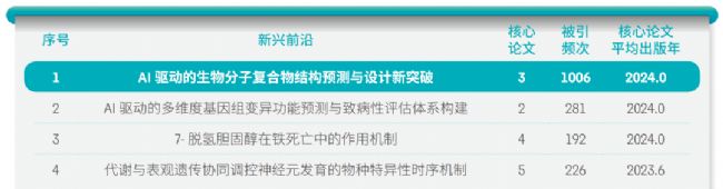 2025 年 4 項(xiàng)新興前沿聚焦四大創(chuàng)新方向:AI 賦能生物分子與基因組研究、7 - 脫氫膽固醇參與鐵死亡機(jī)制、代謝與表觀遺傳協(xié)同調(diào)控神經(jīng)元發(fā)育。