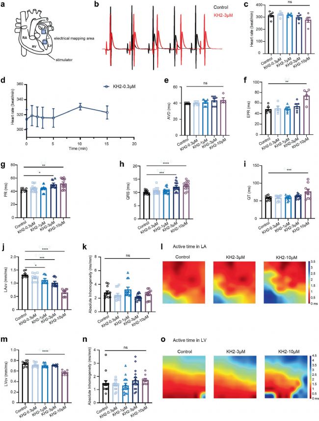 圖4. KH2降低離體大鼠心臟左心房傳導(dǎo)速度