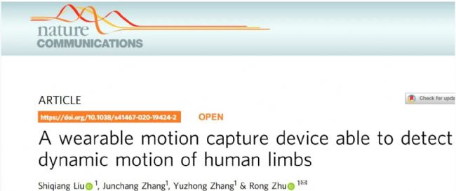 Liu S, Zhang J, Zhang Y, et al. A wearable motion capture device able to detect dynamic motion of human limbs[J]. Nature communications, 2020, 11(1): 5615.