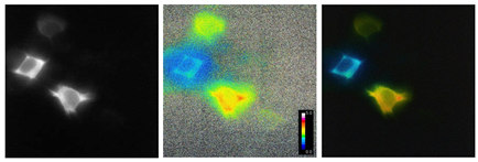 原則上,基于衰變或壽命的測(cè)量與強(qiáng)度的任何變化無關(guān)。然而,在進(jìn)行頻域測(cè)量時(shí),必須注意有效地阻斷激發(fā)光。頻域FLIM測(cè)量了等效于激發(fā)信號(hào)和發(fā)射信號(hào)之間的時(shí)移的相位角,F(xiàn)在,假設(shè)該信號(hào)是發(fā)射信號(hào)和例如激勵(lì)信號(hào)的10%的疊加(由于低效率阻塞),則測(cè)量疊加信號(hào)的相位角該信號(hào)的相角在很大程度上取決于發(fā)光信號(hào)的相位角,但不幸的是,也取決于未阻塞激勵(lì)信號(hào)的強(qiáng)度和發(fā)射的強(qiáng)度之比。因此,在激發(fā)強(qiáng)度通常保持不變的情況下,發(fā)光強(qiáng)度的任何變化都會(huì)引入額外的相角,并可能導(dǎo)致錯(cuò)誤的結(jié)果。