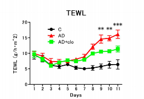 4. 經(jīng)表皮失水量測(cè)量:使用ASCH VAPOSCAN經(jīng)皮水分流失測(cè)量?jī)x,在標(biāo)準(zhǔn)溫濕度環(huán)境下測(cè)量小鼠皮膚病變部位的經(jīng)表皮失水量。