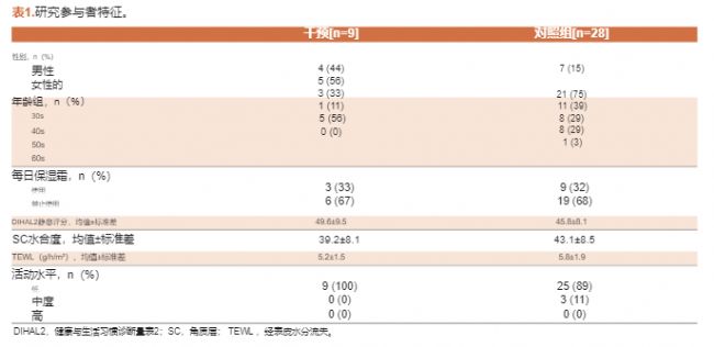 • 將性別、年齡組、保濕護(hù)理習(xí)慣、DIHAL.2休息評分、數(shù)據(jù)收集季節(jié)以及研究起始階段的皮膚保濕功能測量值作為協(xié)變量。