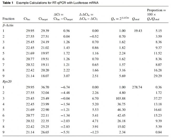 本方案包括從梯度組分中提取RNA,然后進(jìn)行逆轉(zhuǎn)錄和定量PCR (RT-qPCR)、qPCR數(shù)據(jù)處理。其中引入了熒光素酶RNA(FLuc RNA)做標(biāo)準(zhǔn)化。