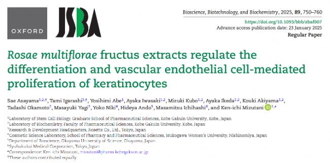 2025年1月23日,神戶學(xué)院大學(xué)的Ken-ichi Mizutani研究團(tuán)隊(duì)在期刊《Bioscience, Biotechnology, and Biochemistry》上發(fā)表了一篇題為“Rosae multiflorae fructus extracts regulate the differentiation and vascular endothelial cell-mediated proliferation of keratinocytes”的論文。研究聚焦野薔薇果提取物對(duì)角質(zhì)形成細(xì)胞的調(diào)控作用,深入探究其對(duì)表皮分化、屏障功能、血管內(nèi)皮細(xì)胞介導(dǎo)的增殖及傷口愈合的影響,同時(shí)鑒定了發(fā)揮作用的關(guān)鍵活性成分及相關(guān)分子機(jī)制。