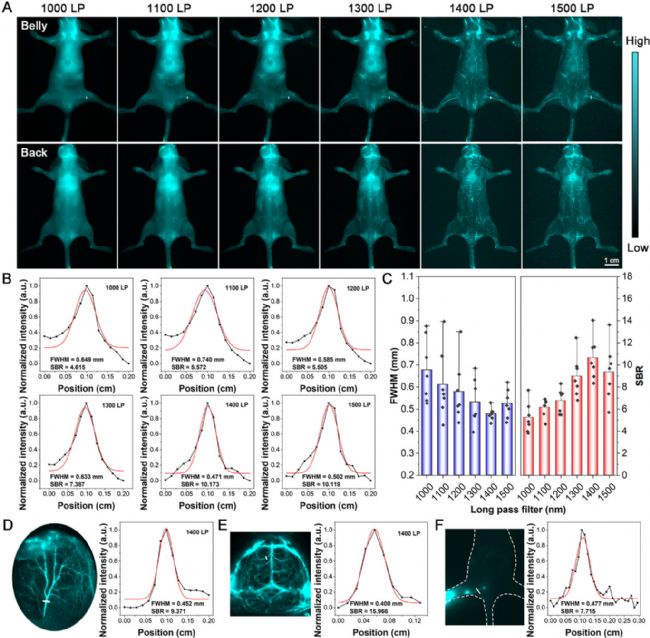 圖3. 血管網(wǎng)絡(luò)和淋巴結(jié)的體內(nèi)近紅外二區(qū)(NIR-II)熒光成像