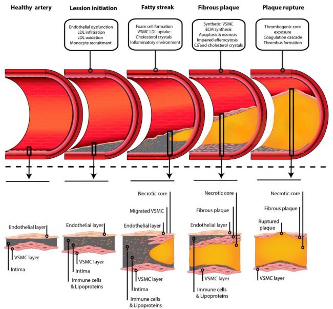 [1] Jebari-Benslaiman S, Galicia-García U, Larrea-Sebal A, Olaetxea JR, Alloza I, Vandenbroeck K, Benito-Vicente A, Martín C. Pathophysiology of Atherosclerosis. Int J Mol Sci. 2022 Mar 20;23(6):3346. doi: 10.3390/ijms23063346. PMID: 35328769; PMCID: PMC8954705.
