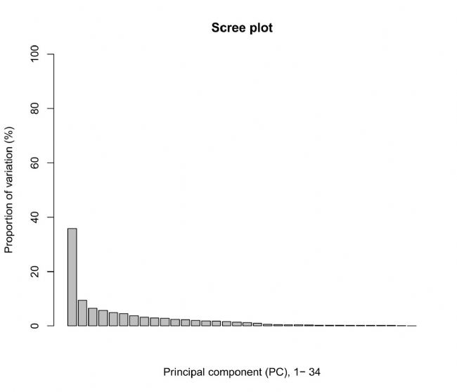project.pca.proportionvariances <- ((project.pca$sdev^2) / (sum(project.pca$sdev^2)))*100
