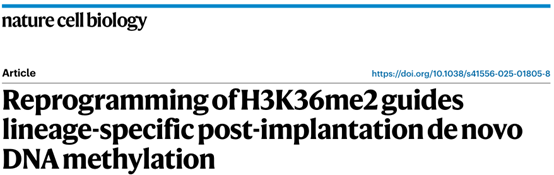 參考文獻(xiàn):Lu X, Wang L, Liu B, Hu X, Wang Z, Liu L, Yu G, Dong L, Kong F, Fan Q, Zhang Y, Xie W. Reprogramming of H3K36me2 guides lineage-specific post-implantation de novo DNA methylation. Nat Cell Biol. 2025 Nov 11. doi: 10.1038/s41556-025-01805-8.