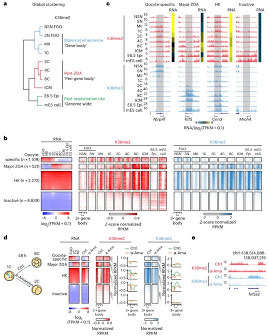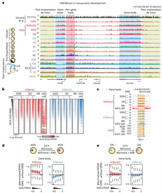 圖1:小鼠卵母細(xì)胞及早期胚胎中H3K36me2的定位圖譜