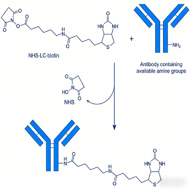成功制備高效、低背景的生物素化二抗需要精細(xì)的流程控制。其核心步驟包括:首先,通過化學(xué)活化反應(yīng),將生物素分子上的活性基團(tuán)(如N-羥基琥珀酰亞胺酯)與二抗蛋白分子表面的伯氨基(主要位于賴氨酸殘基)進(jìn)行特異性偶聯(lián),形成穩(wěn)定的酰胺鍵。此過程中的幾個(gè)關(guān)鍵參數(shù)直接影響最終產(chǎn)物的性能:一是生物素與抗體的摩爾投料比。比例過低可能導(dǎo)致標(biāo)記效率不足,信號(hào)弱;比例過高則可能因過度標(biāo)記而掩蓋抗體的抗原結(jié)合位點(diǎn),導(dǎo)致活性下降或產(chǎn)生非特異性背景。通常推薦的生物素與二抗的摩爾比在5:1至20:1之間,需根據(jù)具體抗體和實(shí)驗(yàn)需求進(jìn)行優(yōu)化。二是引入合適的"連接臂"。在生物素與抗體之間加入適當(dāng)長度的化學(xué)間隔臂(如一個(gè)6-22個(gè)碳原子的鏈),可以有效減少生物素分子因緊貼抗體表面而產(chǎn)生的空間位阻,使其更易于被鏈霉親和素結(jié)合,從而提升檢測(cè)靈敏度。反應(yīng)完成后,需要通過凝膠過濾色譜或超濾等方法,將未反應(yīng)的游離生物素徹底去除,以避免其競(jìng)爭(zhēng)性結(jié)合后續(xù)步驟中的鏈霉親和素-報(bào)告分子復(fù)合物,造成背景升高或信號(hào)減弱。純化后的生物素化二抗需準(zhǔn)確測(cè)定蛋白濃度,并評(píng)估其保存穩(wěn)定性。
