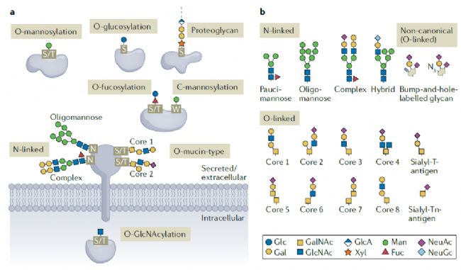 圖1 哺乳動物中常見的蛋白質(zhì)糖基化類型(Ieva Bagdonaite, et al., 2022)
