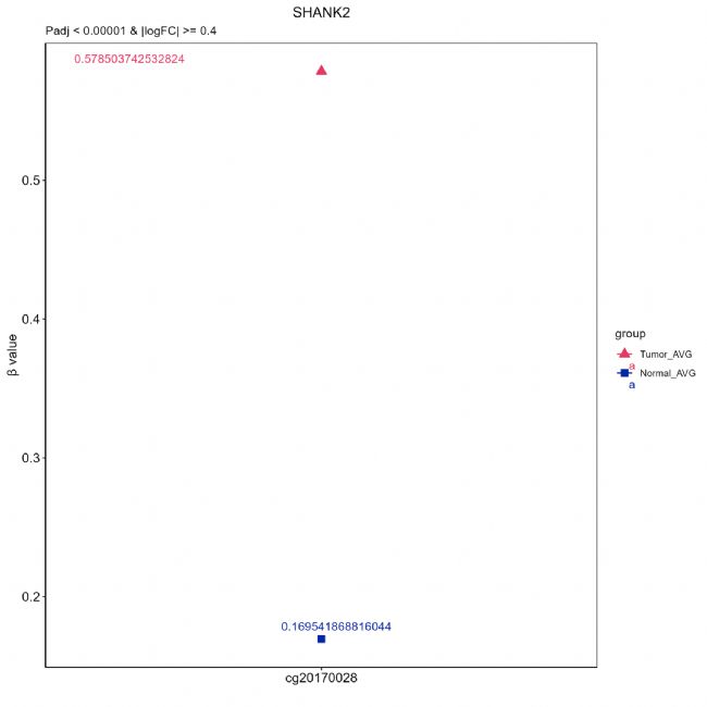 labs(x="",y="β value", title = "SHANK2", subtitle = "Padj < 0.00001 & |logFC| >= 0.4") +