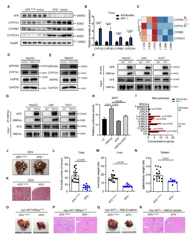 1. AF6通過調(diào)控HNF4α抑制初級(jí)膽汁酸合成,敲除后抑制肝癌進(jìn)展
