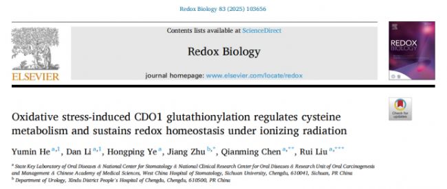電離輻射通過誘導 CDO1 C164 位谷胱甘肽化修飾,抑制其酶活性與半胱氨酸氧化,優(yōu)先將半胱氨酸用于 GSH 合成,維持細胞 redox 穩(wěn)態(tài)并提升輻射耐受性,為輻射損傷靶向干預提供新策略。