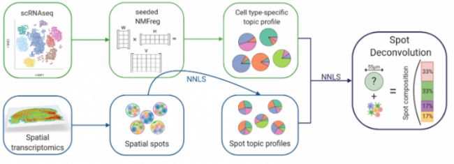 - 映射單細(xì)胞到空間坐標(biāo):基于上述匹配結(jié)果,將單細(xì)胞類型精準(zhǔn)分配給空間組學(xué)中的spots,從而推測(cè)每個(gè)spot處的主要細(xì)胞類型組成。這一步驟實(shí)現(xiàn)了單細(xì)胞數(shù)據(jù)與空間信息的深度融合,使我們能夠更直觀地了解細(xì)胞在組織中的空間分布情況。