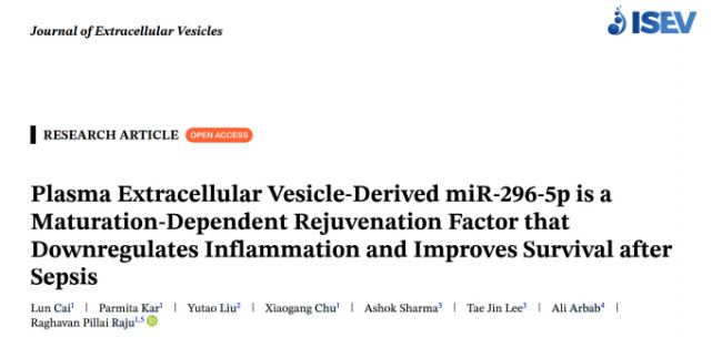 血漿EV源miR-296-5p研究:年齡依賴性抗衰老因子減輕膿毒癥炎癥