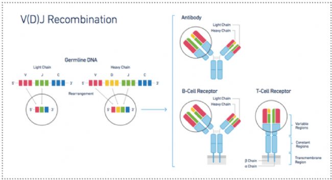 圖2. TCR/BCR基因組重排示意圖