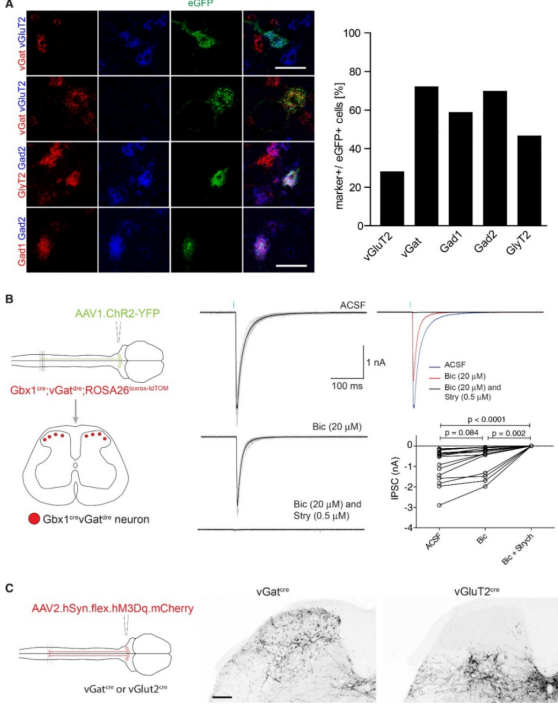 02、Gbx1神經(jīng)元直接抑制脊髓板層的傷害性輸出神經(jīng)元